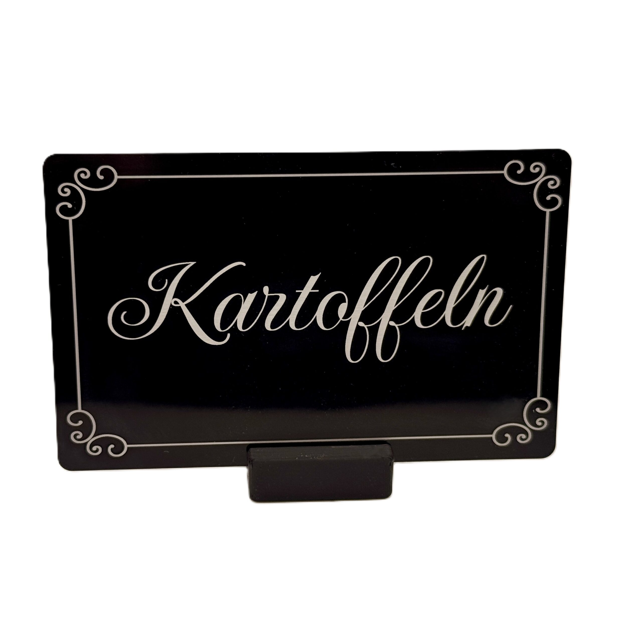 Typische Einsatzbereiche sind Buffetbeschriftungen, Kennzeichnungen von Speisen, Hinweisschilder, Tischaufsteller oder hochwertige Visitenkarten für Restaurants, Cafés, Hotels, Caterer oder Foodtrucks. Aluminium wirkt zurückhaltend, modern und professionell, ohne aufdringlich zu sein.